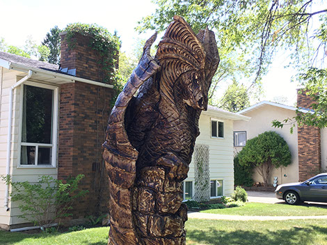 * While some of these works may be in view of the public, please respect the homeowners and refrain from entering their property without permission. The carvings are equally beautiful from public vantage points and most if not all of the homeowners take great delight in watching people stop and admire their investments.