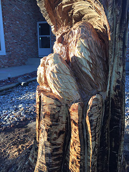 I'll never forget the day I met this homeowner. I was working in my shop and I heard someone shout "You're my knight in shining armor!" She was talking to me and was referring to the fact that they had had a special tree cut down but had left a large stump behind knowing that one day, some where she would find me and could get me to come carve her family of snowy owls.