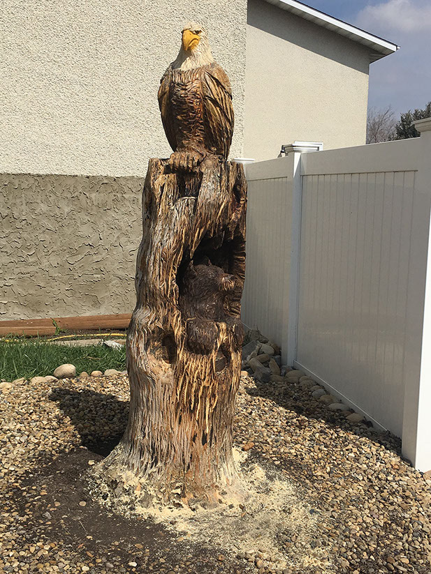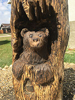 It was an absolute pleasure to work on this piece which we completed in two carves. The eagle came first and I'll never forget how exited the homeowner was when I suggested he could paint it if he wanted. And a fine paint job it was! We reconnected the following season to get the bear in and to complete the vision the homeowner had all along. A neighborhood delight.